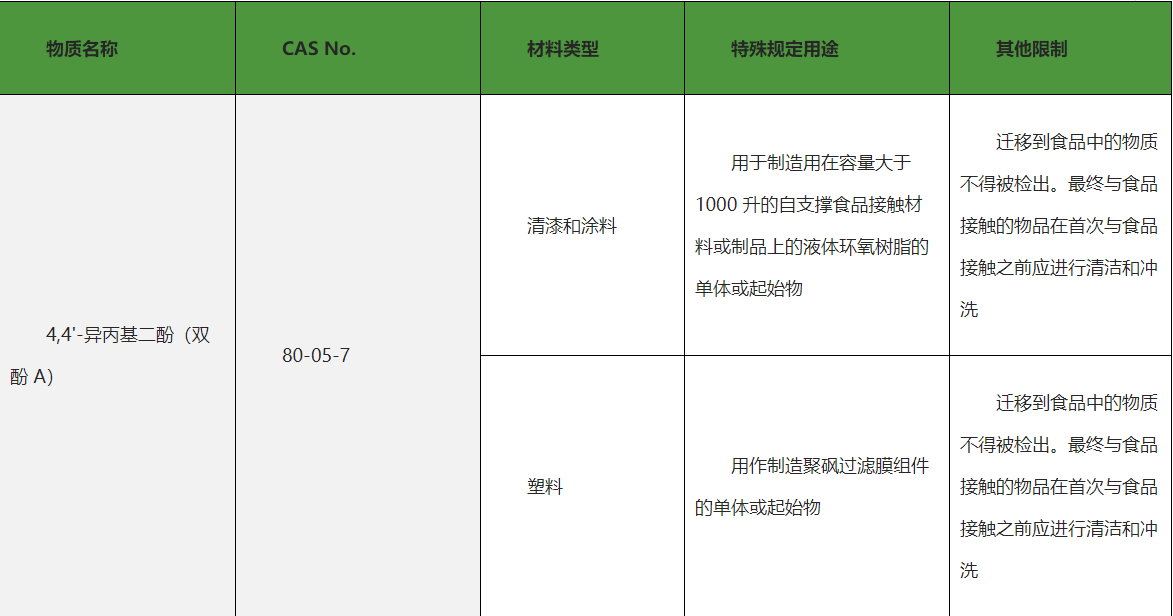 如果在食品接触材料和制品的生产中按照所适用规定使用了其他双酚物质或双酚衍生物,则不得检出BPA残留。