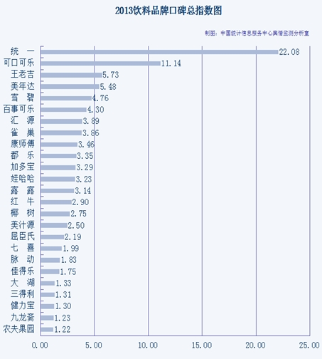 2013中国饮料品牌口碑总指数图