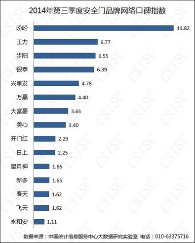 中国统计信息服务中心(CSISC)、中国质量新闻网6日联合发布《2014年三季度安全门品牌口碑研究报告》(以下简称《报告》)。市场表现比较活跃的29个安全门品牌经过了民意好口碑的公平监测及评价。随着国家免检产品、中国名牌、中国驰名商标等由政府部门认定的“金杯银杯”被国家禁止用于企业宣传,百姓消费参考进入民意口碑风向标时代。