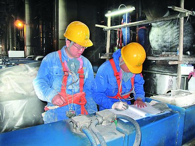 2009年5月,技术人员奋战在辽宁绥中电站锅炉检验现场。