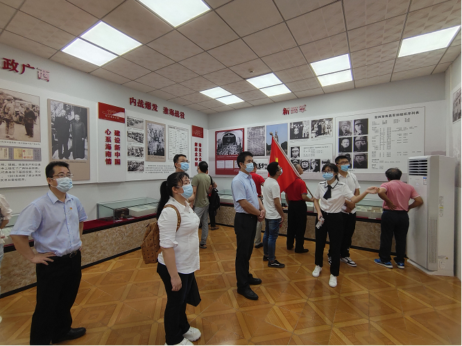 首先,邹小阳副处长和吴清宇所长率队参观了张云逸大将生平陈列室,认真研读相关图片及展品,在讲解员的引领下,回顾将军的光辉事迹。张云逸一生谨记“以遂初志,而尽己责”的信念,为革命事业奋斗终生,是一名坚定的共产主义战士。他参加了在中国共产党领导下的中国革命战争的全过程,在长期革命战争实践中,成为有深厚马列主义毛泽东思想理论基础和无产阶级战略修养的优秀革命领导人。一张张老旧图片、一件件珍贵文物生动述说着将军的生平和革命活动,在场党员干部边睹物追忆边相互交流,深深感受到老一辈革命家非凡的政治魄力和爱国情怀。